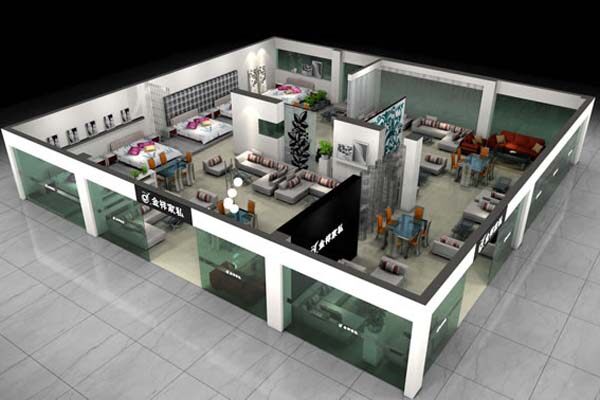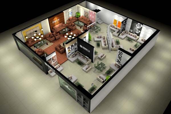 方形結(jié)構(gòu)的家私展廳設(shè)計效果圖(一)